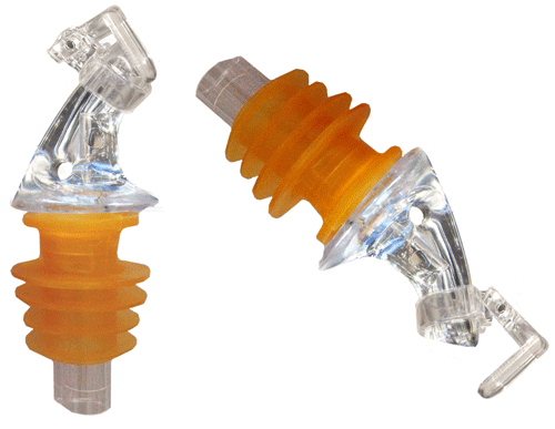 Normal-flow, hard plastic free-pour spout with a large-sized amber colored poly-cork for bottles with necks close to 1.1" (29mm) inside diameter. This specialty spout will fit 750ml and liter bottles of the old-style 1800 tequila (not the new screw top bottle that requires a standard clear cork), Cabo Wabo tequila, Rebecca Creek whiskey and other bottles with wide necks.