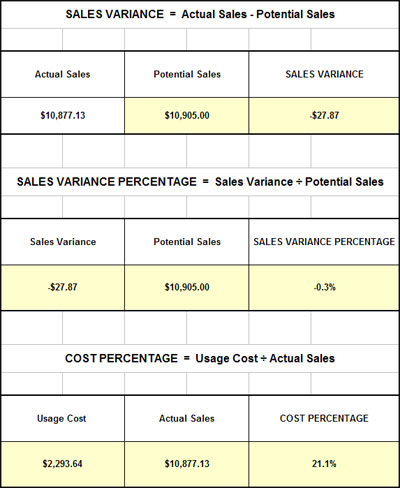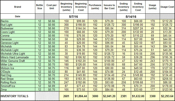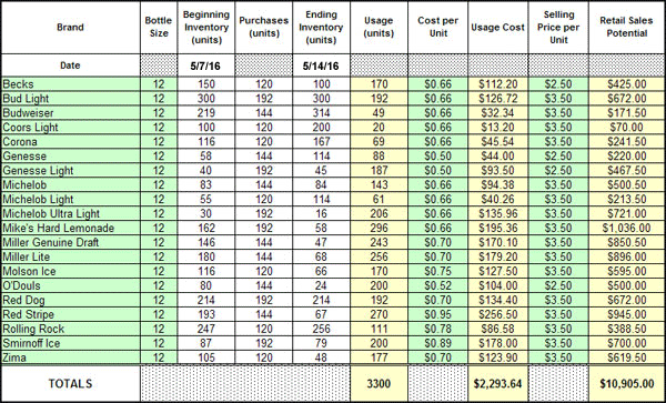 Managers simply enter inventory data into the spreadsheets and the software automatically calculates inventory values, potential revenues and beverage cost percentages.