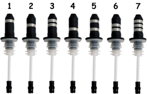 Seven (7) different styles of pour spouts are assigned to liquors based on each brand's selling price. For example, #1 spouts may be put on your $4/shot Well-brand liquors, #2 spouts may be put on your $5/shot Call-brand liquors, etc. We'll help you assign the liquor brands in your bar to the 7 different spouts based on the liquor prices you charge. Click here to see a sample Spout Assignment Sheet. This control system even takes into account multiple pricing structures, like happy hour prices or entertainment drink prices.