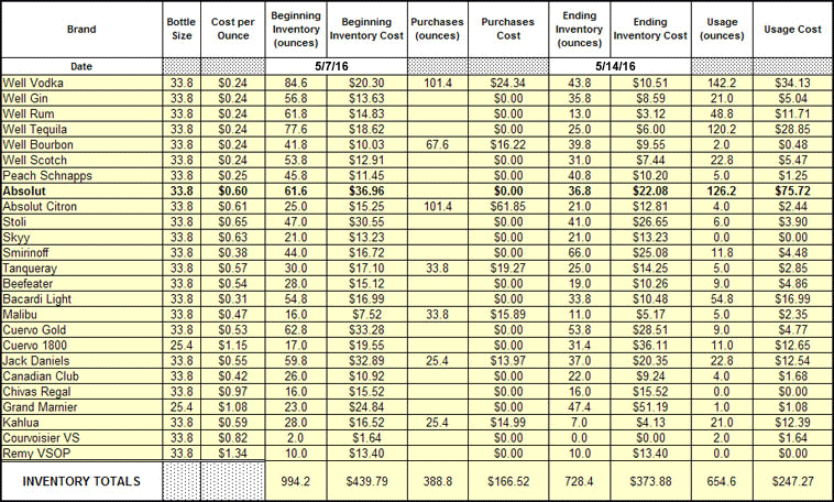 After a little practice, 60+ bottles can be inventoried in less than 10 minutes. Consistent monitoring will identify and help to eliminate bartenders that are over-pouring, giving away free drinks and skimming cash. This one-time cost will make your inventories more accurate without having to weigh the partial bottles.